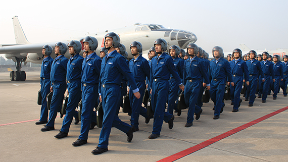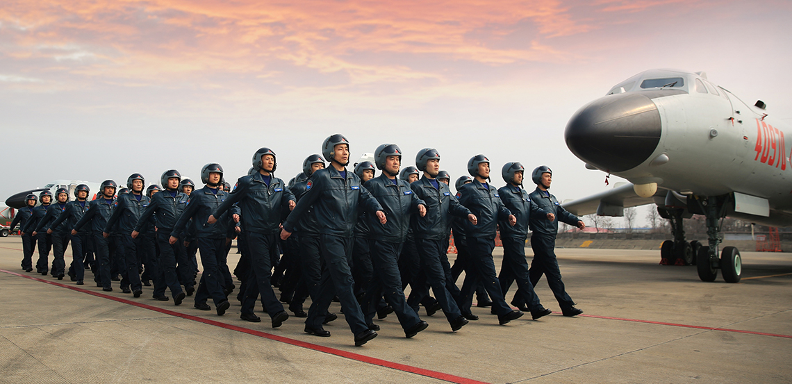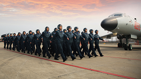 空軍“神威大隊(duì)”飛行員列隊(duì)進(jìn)場(chǎng) 空軍“神威大隊(duì)”作為習(xí)主席視察部隊(duì)的典型代表,歷史上曾執(zhí)行開辟北京至拉薩航線、航測(cè)珠穆朗瑪峰、空投“兩彈”、黃河炸凌等任務(wù),1996年因出色完成任務(wù)受軍委嘉獎(jiǎng),被空軍授予“神威大隊(duì)”榮譽(yù)稱號(hào)。組建65年來歷經(jīng)6次調(diào)整、6次換裝,4次受到黨和國家領(lǐng)導(dǎo)人檢閱,10次榮立集體三等功,5個(gè)機(jī)組榮立集體一等功。特別是習(xí)主席親臨視察該師后,大隊(duì)官兵牢記領(lǐng)袖囑托,苦練精飛、實(shí)戰(zhàn)實(shí)訓(xùn),參加空軍突防突擊競(jìng)賽性考核勇奪“金飛鏢”,實(shí)兵實(shí)彈演習(xí)開創(chuàng)多項(xiàng)紀(jì)錄,換裝轟-6K提前整建制形成戰(zhàn)斗力。去年底,“神威大隊(duì)”連續(xù)組織從宮古海峽前出第一島鏈、戰(zhàn)巡南海等遠(yuǎn)海遠(yuǎn)洋訓(xùn)練,全面提升新時(shí)代打贏能力。