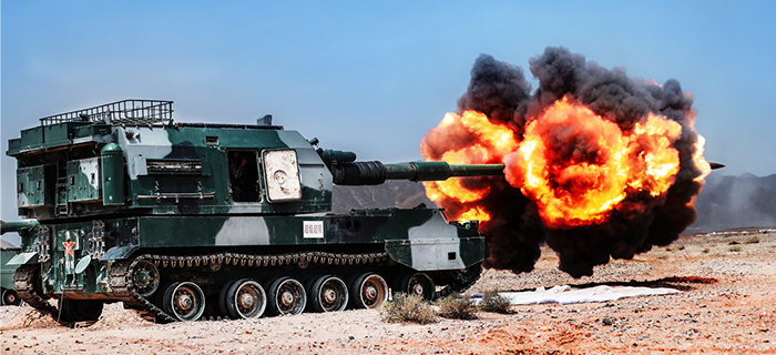 第74集團軍某炮兵旅在西北大漠組織實彈射擊考核。實彈射擊考核,第74集團軍