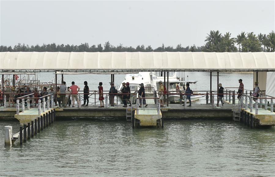 3月13日,游人在博鰲亞洲論壇永久會(huì)址景區(qū)碼頭準(zhǔn)備乘船游覽。新華社記者 魯鵬 攝