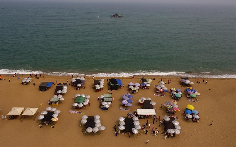 3月13日,游人在博鰲亞洲論壇永久會(huì)址景區(qū)附近的玉帶灘上游玩(無(wú)人機(jī)拍攝)。新華社記者楊冠宇攝