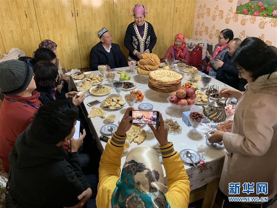 2016年搬到新居的古麗努爾·圖爾地買買提一家,精心裝飾了新屋,屋內(nèi)地面鋪上了地毯,客廳墻壁也掛上了毯子和柯爾克孜族的手工繡品。媒體團(tuán)成員坐在古麗努爾家客廳品嘗了她親手制作的傳統(tǒng)食物。