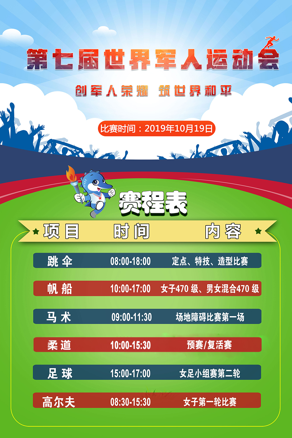 10月19日第七屆世界軍人運(yùn)動會賽程安排