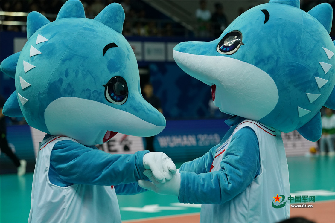 10月16日,軍運(yùn)會(huì)中國(guó)女排與美國(guó)女排的首場(chǎng)小組賽上,吉祥物兵兵亮相。柳軍攝
