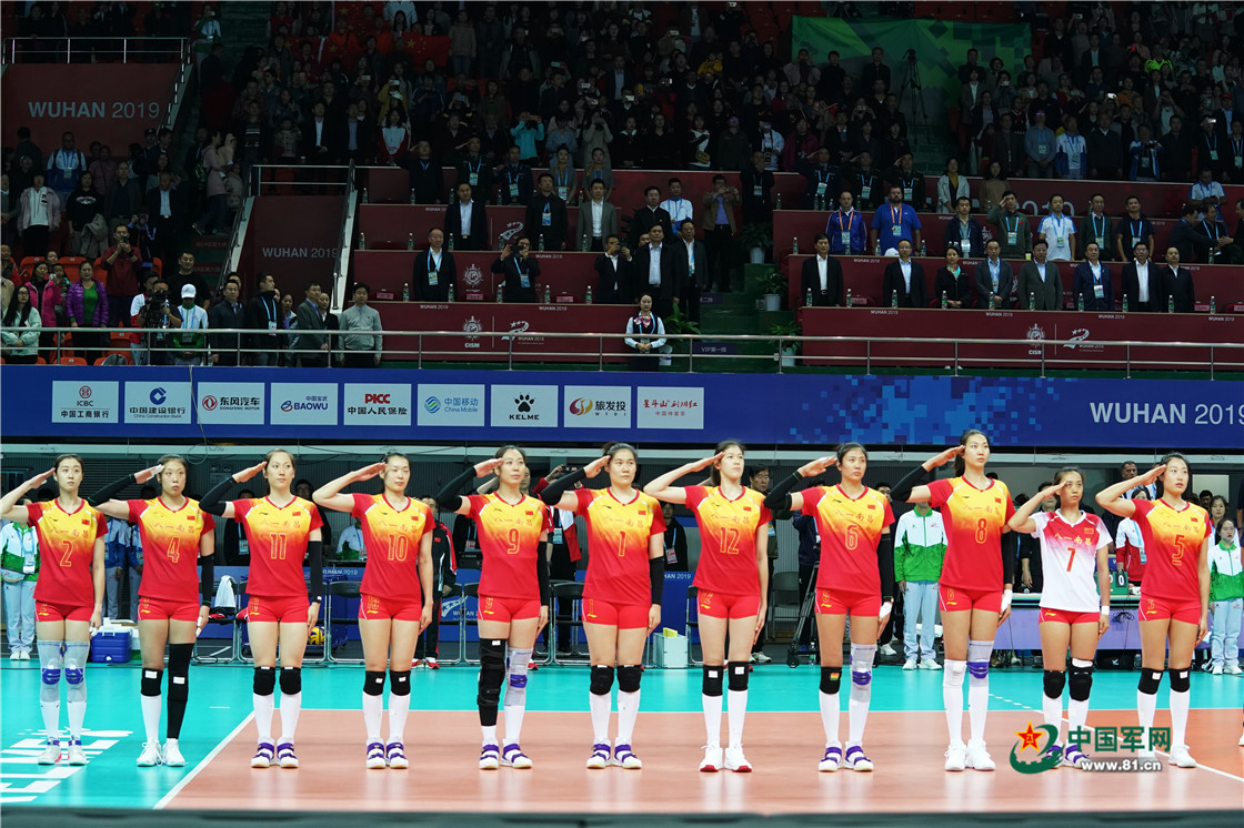 10月16日,第七屆世界軍人運(yùn)動(dòng)會(huì)首個(gè)體育比賽日,中國(guó)女排與美國(guó)女排的首場(chǎng)小組賽上,中國(guó)八一女排3比0戰(zhàn)勝美國(guó)女排。柳軍攝