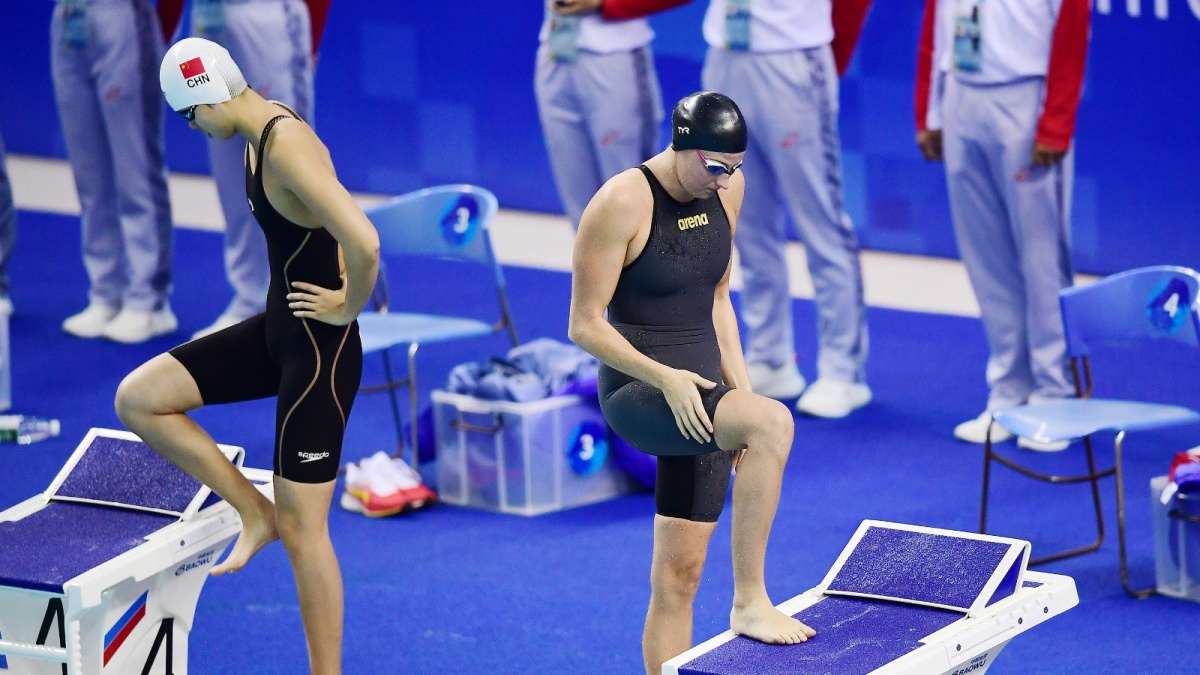女子100米自由泳:中國隊包攬冠亞軍