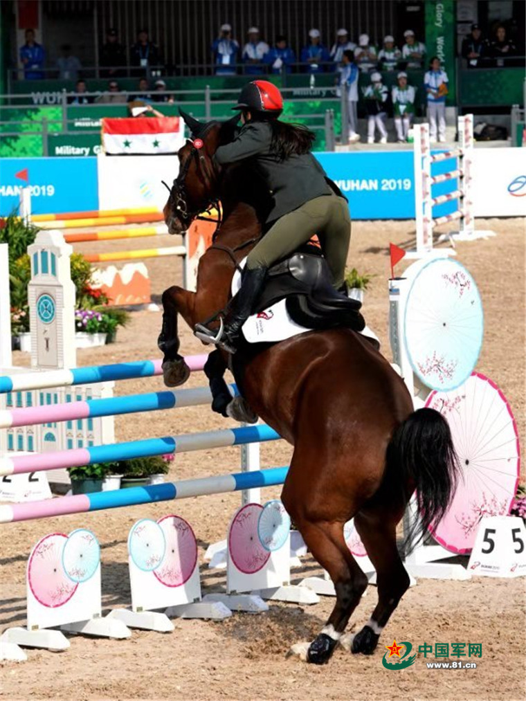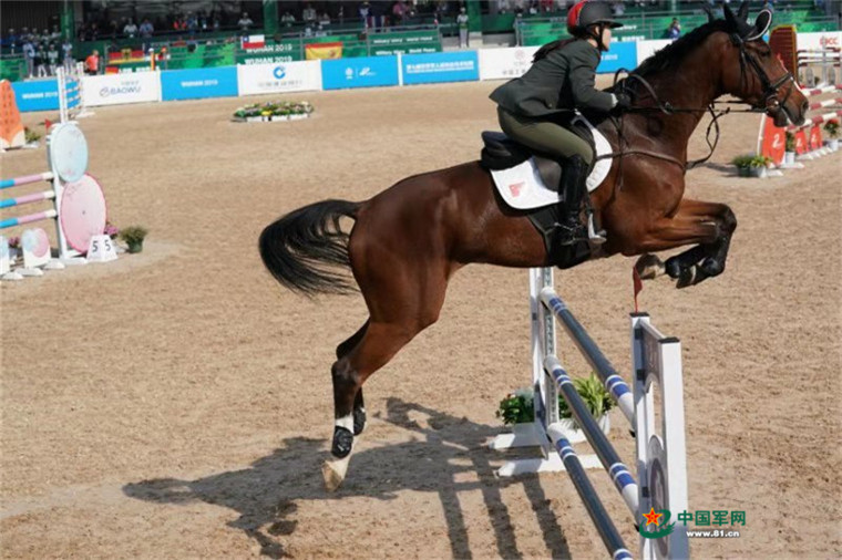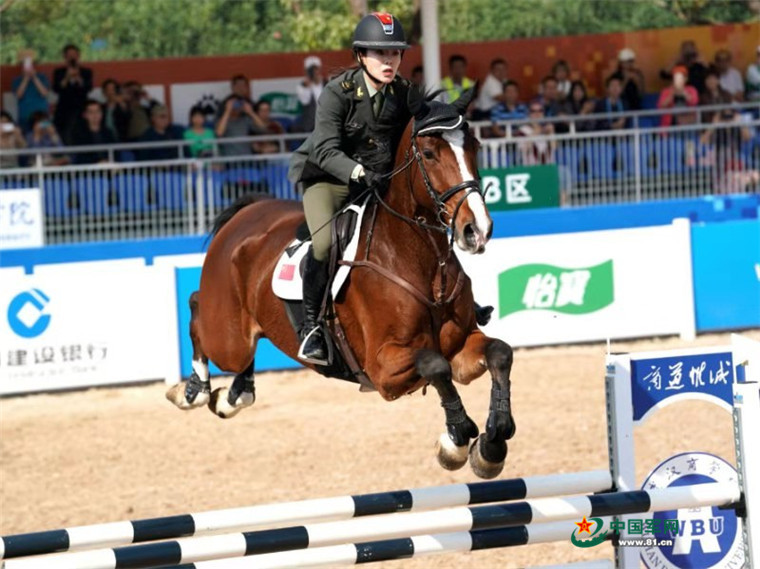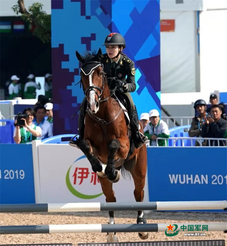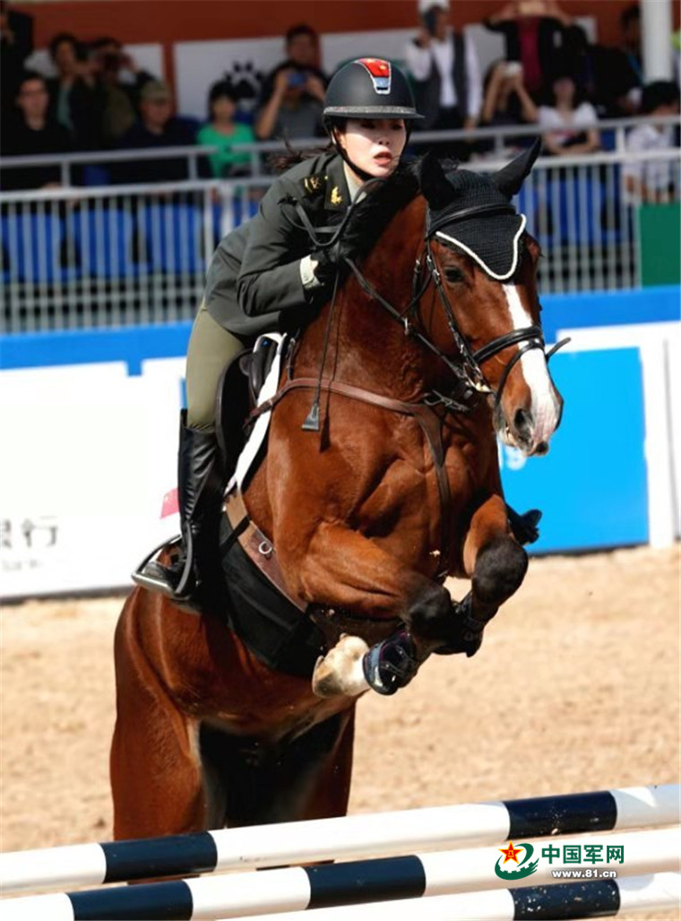 10月21日,世界軍人運動會馬術(shù)場地障礙賽上,中國女選手田羽(下士)在比賽中彰顯巾幗風(fēng)彩。柳軍攝影