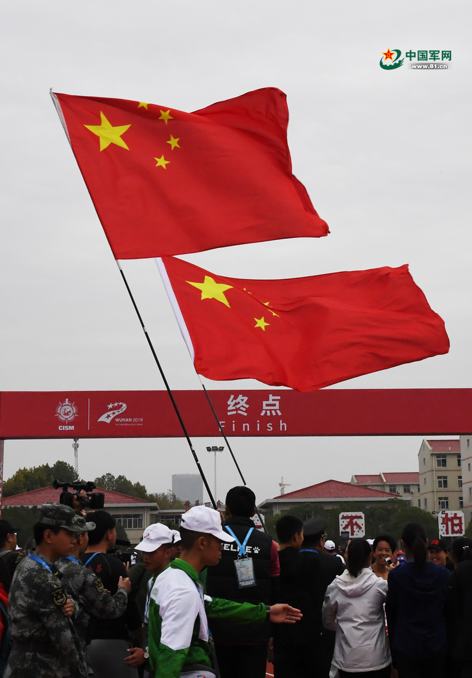 五星紅旗在軍事五項賽場上飄揚。