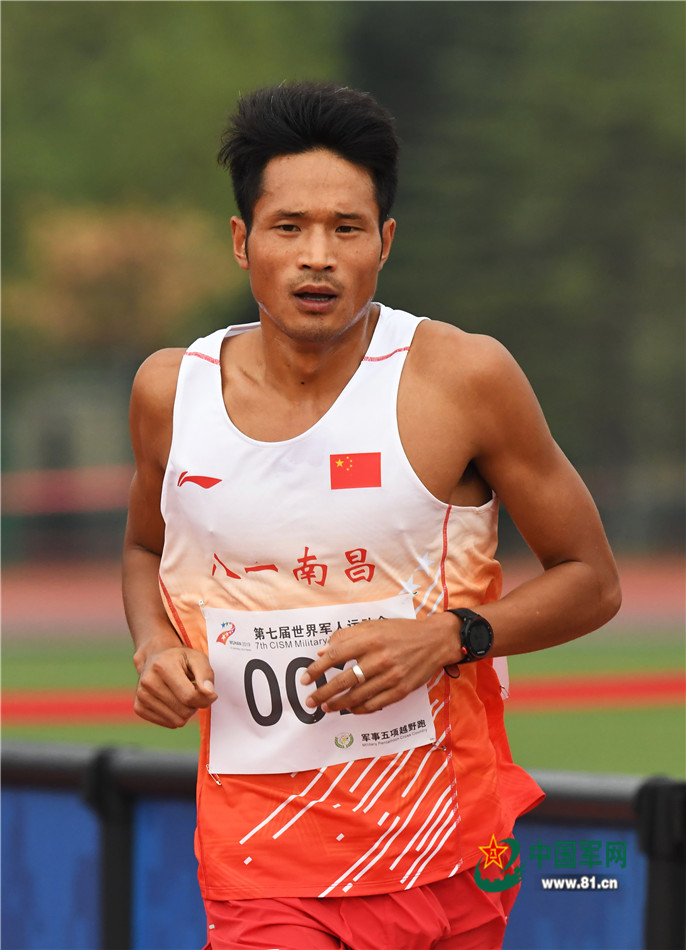 阿牛爾古在軍事五項(xiàng)越野跑比賽中。