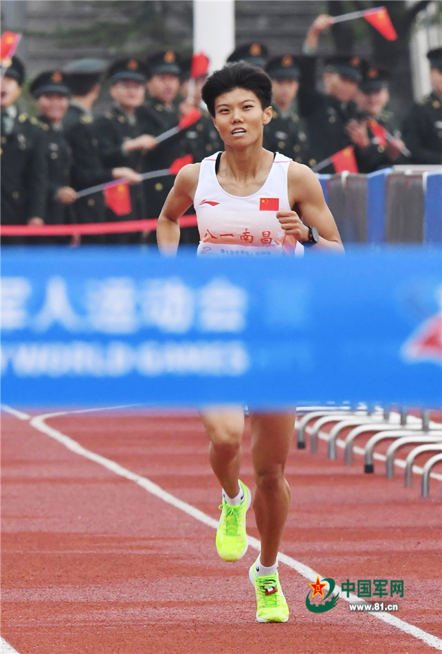 盧嬪嬪在軍事五項越野跑項目中沖向終點。