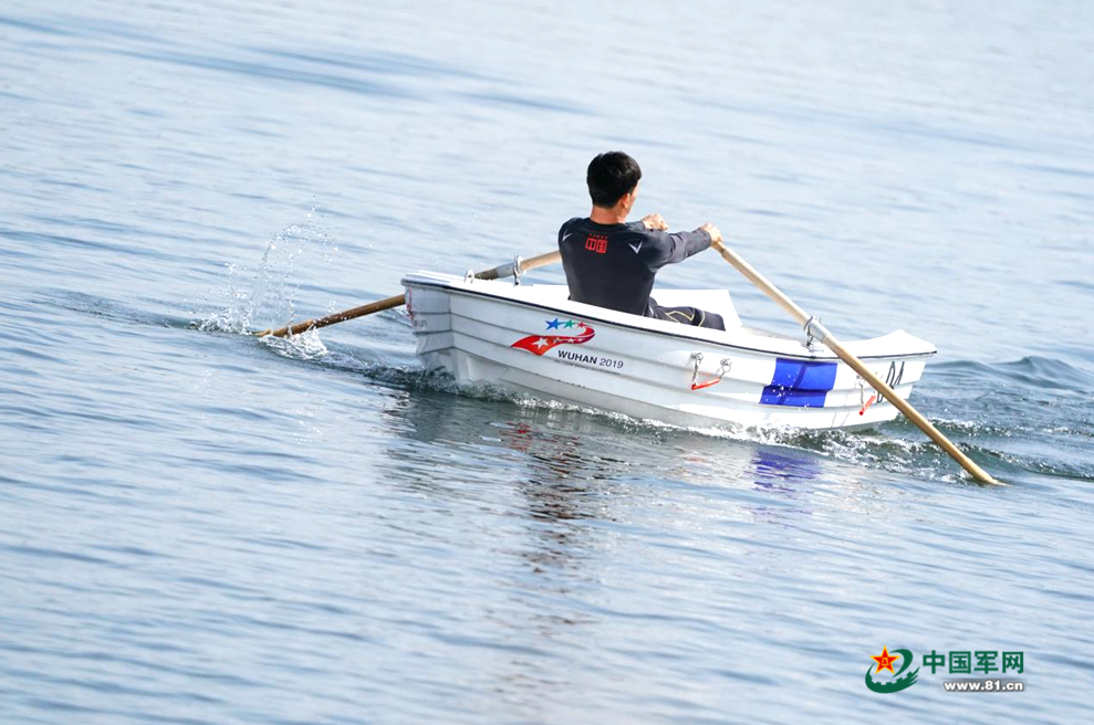 中國隊楊錦水上劃船。中國軍網(wǎng)記者蘭卓文 攝