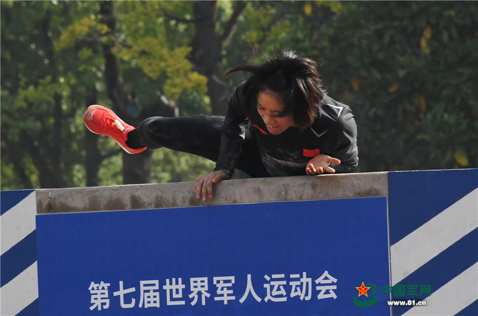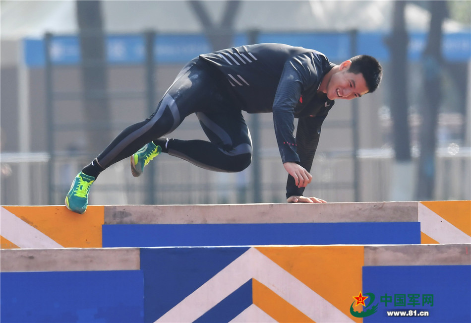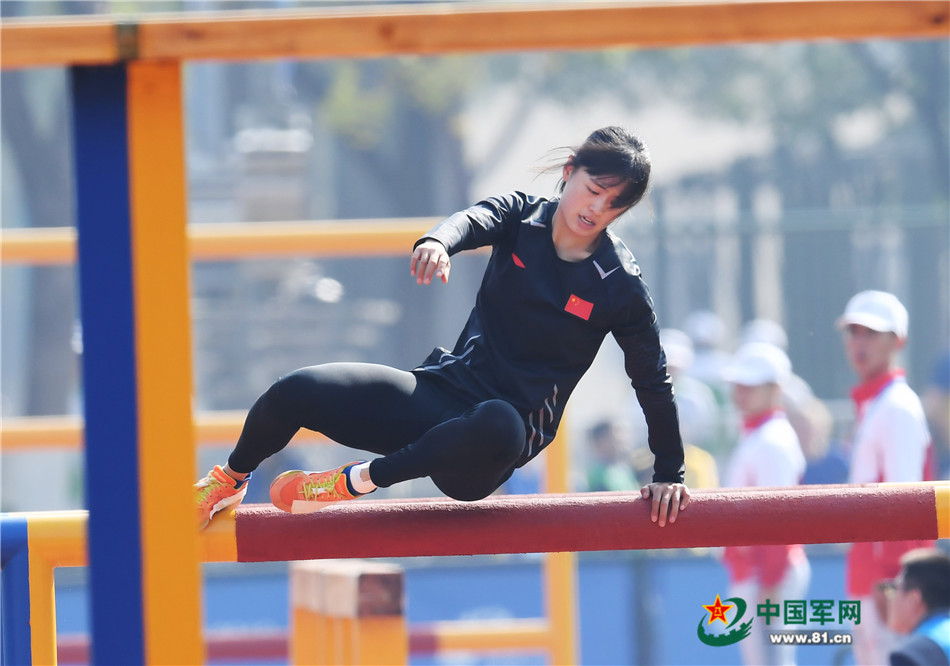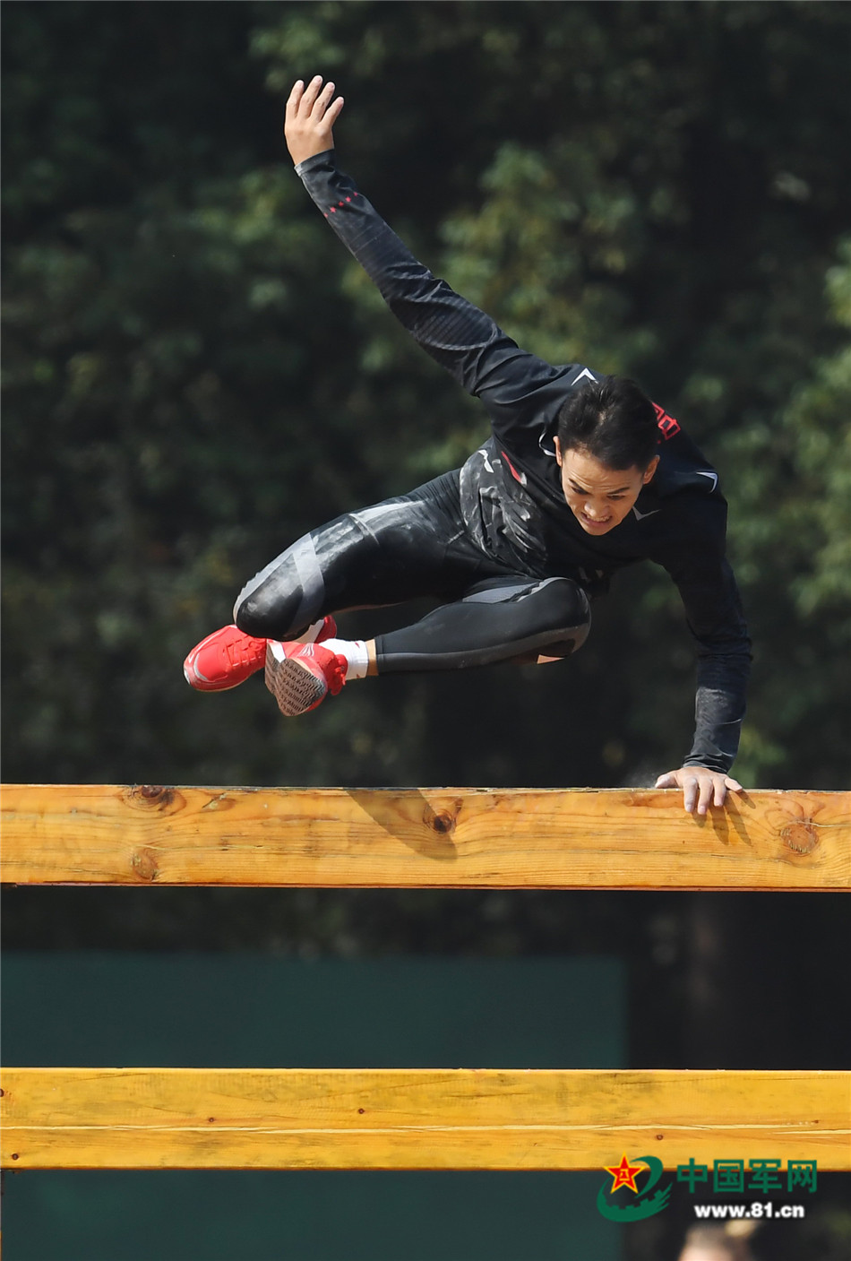 和浩琴在空軍五項(xiàng)障礙跑比賽中。王傳順攝