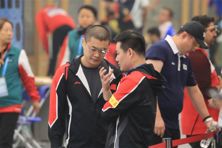 ▲10月23日,蔡甸國防園射擊館,中國八一射擊隊奪得男子25米中心發(fā)火手槍(速射)團體冠軍(攝影:朱西迪)