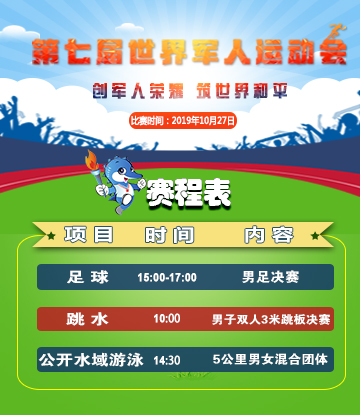 概況:第七屆世界軍人運(yùn)動會將于2019年10月18日至27日在中國武漢舉行。設(shè)有25個比賽項(xiàng)目和2個表演項(xiàng)目。