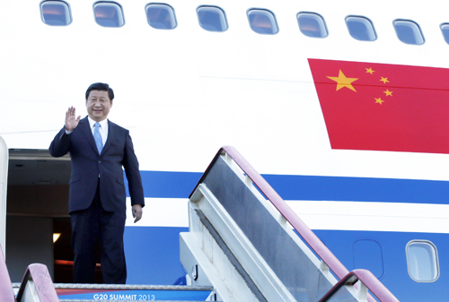 2013年9月4日,習(xí)近平抵達(dá)俄羅斯圣彼得堡,出席5日至6日舉行的二十國集團領(lǐng)導(dǎo)人第八次峰會。