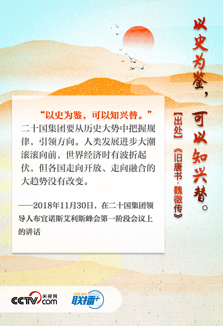在歷次G20峰會上的講話中,習近平引經(jīng)據(jù)典,深入淺出地闡釋中方立場,為世界經(jīng)濟發(fā)展貢獻“中國方案”。央視網(wǎng)與您重溫經(jīng)典話語,感受“G20時間”里的中國智慧。