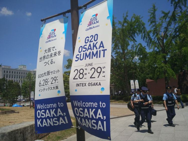 入夏的大阪,驕陽燦爛,綠意蔥籠,海風輕拂路人。隨著峰會臨近,在大阪主要景區(qū)、酒店、商廈及干道,均可以看到帶有二十國集團領導人大阪峰會元素的標牌、海報和條幅。