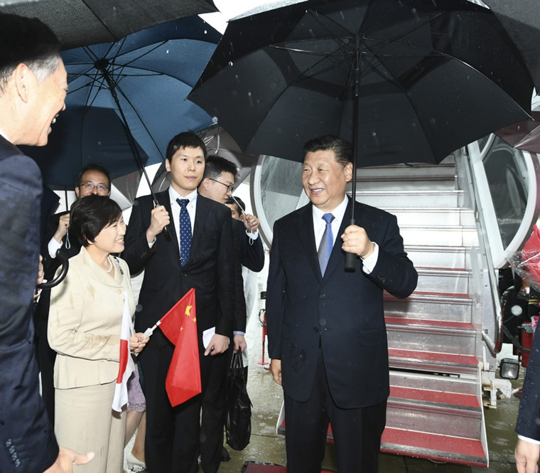 6月27日,國家主席習(xí)近平乘專機抵達大阪,應(yīng)日本國首相安倍晉三邀請,出席二十國集團領(lǐng)導(dǎo)人第十四次峰會。日本政府高級官員、大阪府知事等在舷梯旁迎接。新華社記者 謝環(huán)馳 攝