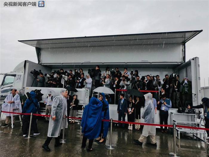 27日上午,大阪,雨。等待報道習(xí)近平抵達大阪的記者。