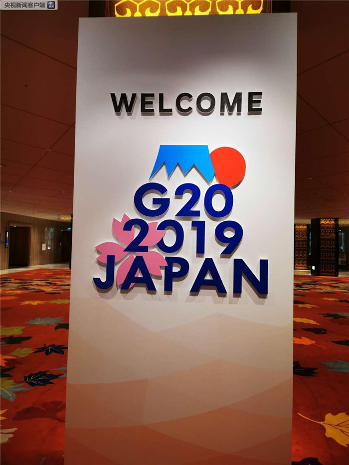 G20峰會(huì)標(biāo)志牌。標(biāo)志由象征著日本的富士山、太陽和櫻花等元素構(gòu)成。富士山的“山頂”和“朝日”象征著增長和繁榮。山腳下,盛開的櫻花代表著春天,寄托了人們對全球經(jīng)濟(jì)繁榮增長的美好期待(央視記者荊偉拍攝)。