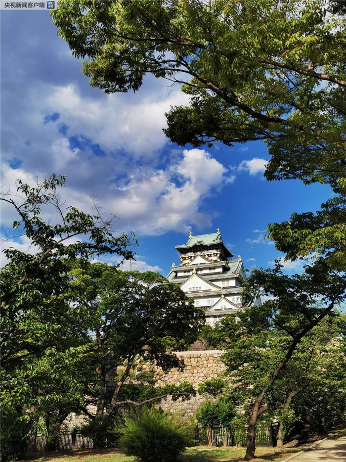 大阪城天守閣。天守閣是日本戰(zhàn)國時期修建的大型城堡,在軍事上有關(guān)樓和瞭望塔的作用。同時,它也是城主的居住之地,象征著城主的政治權(quán)力和地位。現(xiàn)在的天守閣建成于1931年,是模仿豐臣秀吉時代的天守閣建造的(央視記者荊偉拍攝)。