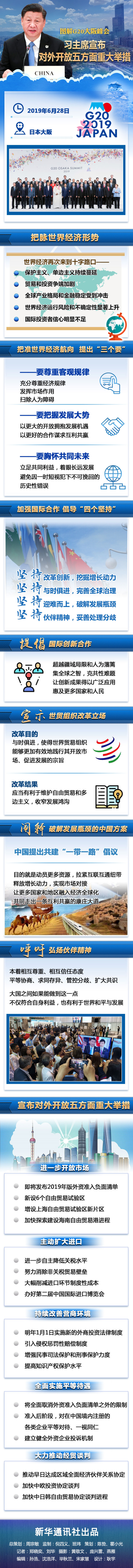 6月28日,習近平主席在日本大阪舉行的二十國集團領(lǐng)導人峰會上發(fā)表題為《攜手共進,合力打造高質(zhì)量世界經(jīng)濟》的重要講話,宣布對外開放五方面重大舉措。