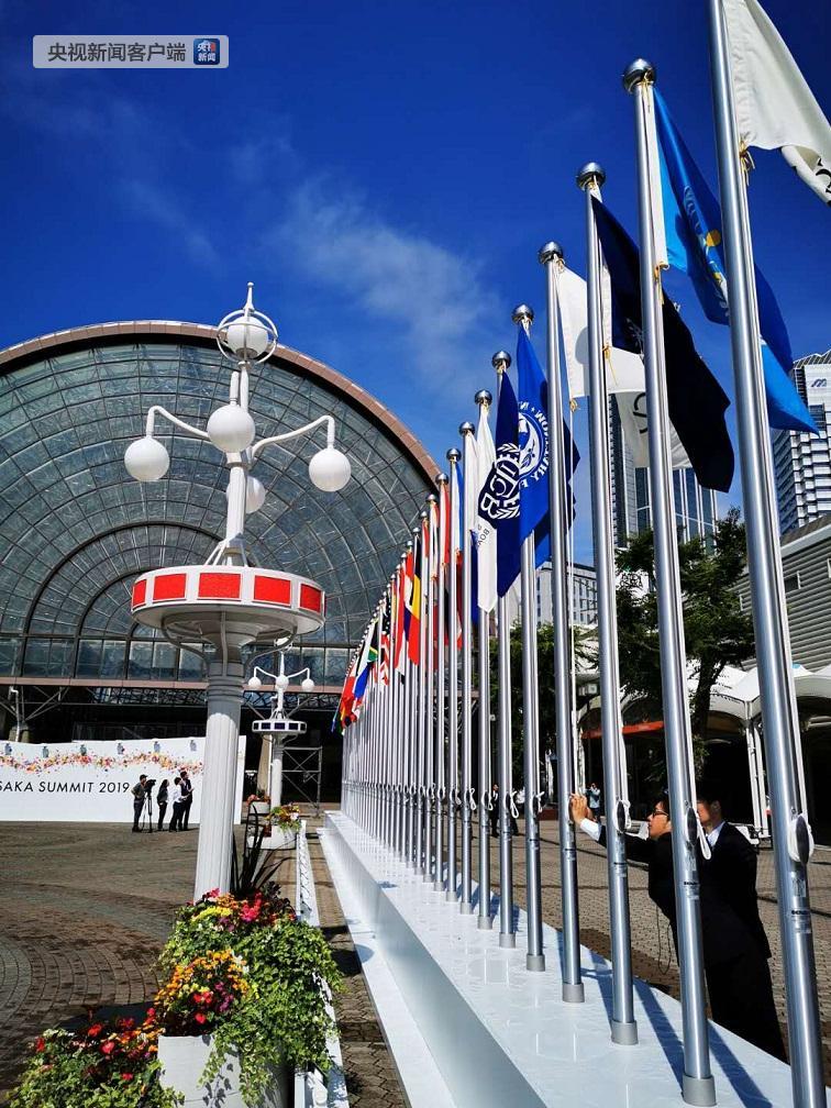 △大阪國際展覽中心的各方旗幟。(央視記者荊偉拍攝)
