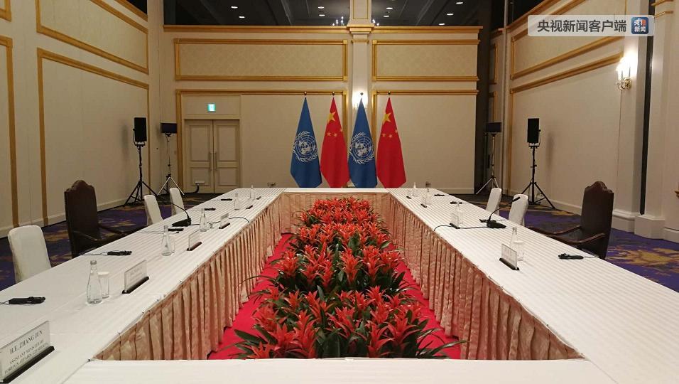△習(xí)近平與古特雷斯會(huì)見(jiàn)的會(huì)場(chǎng)。(央視記者黃京輝拍攝)
