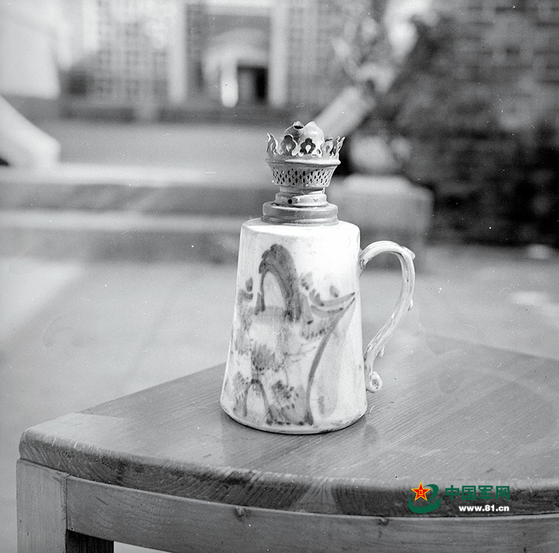 毛澤東起草古田會議決議草案初稿時用過的瓷油燈。(圖片來源:解放軍畫報資料室)