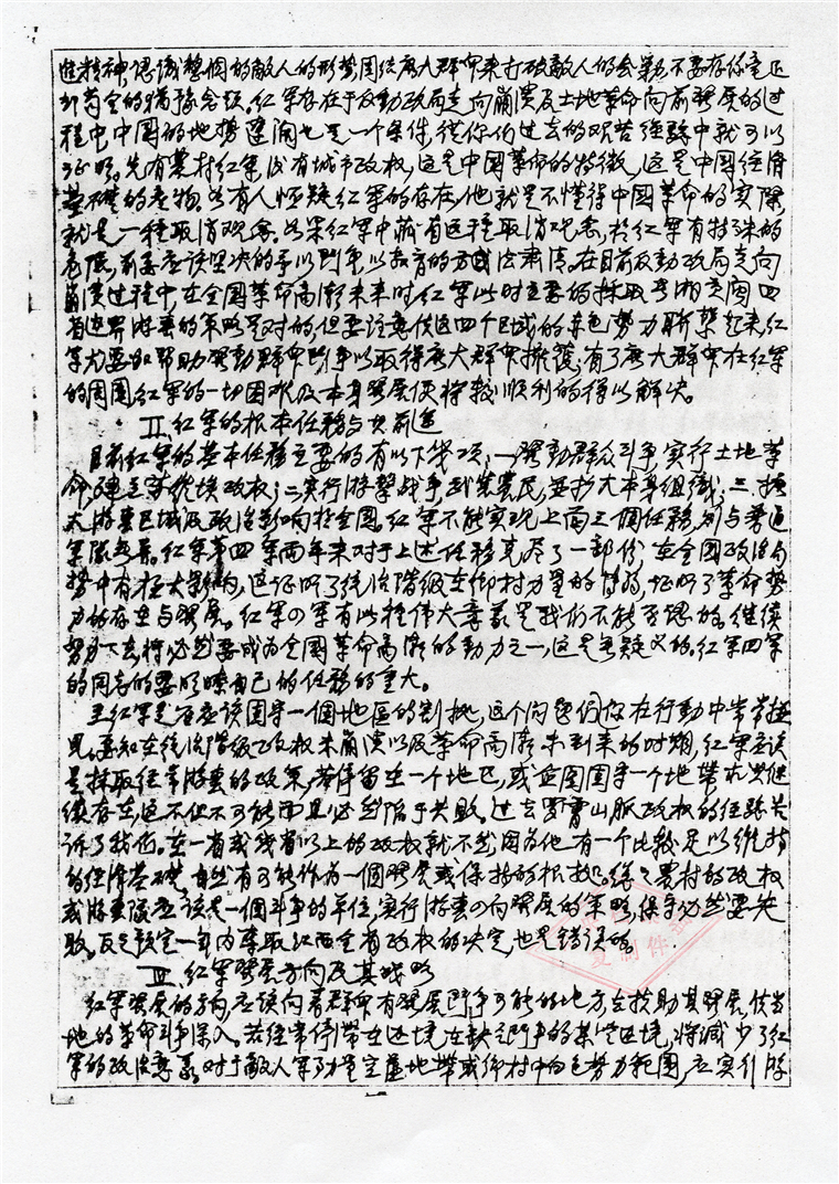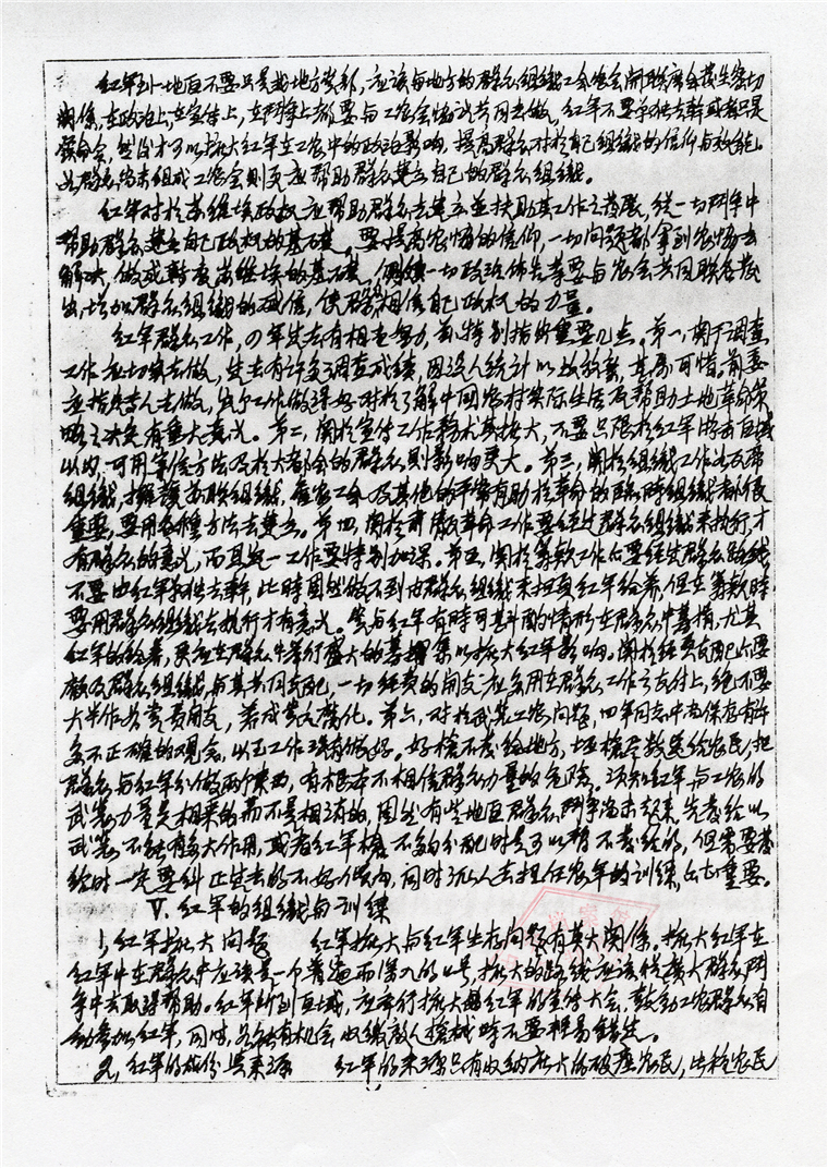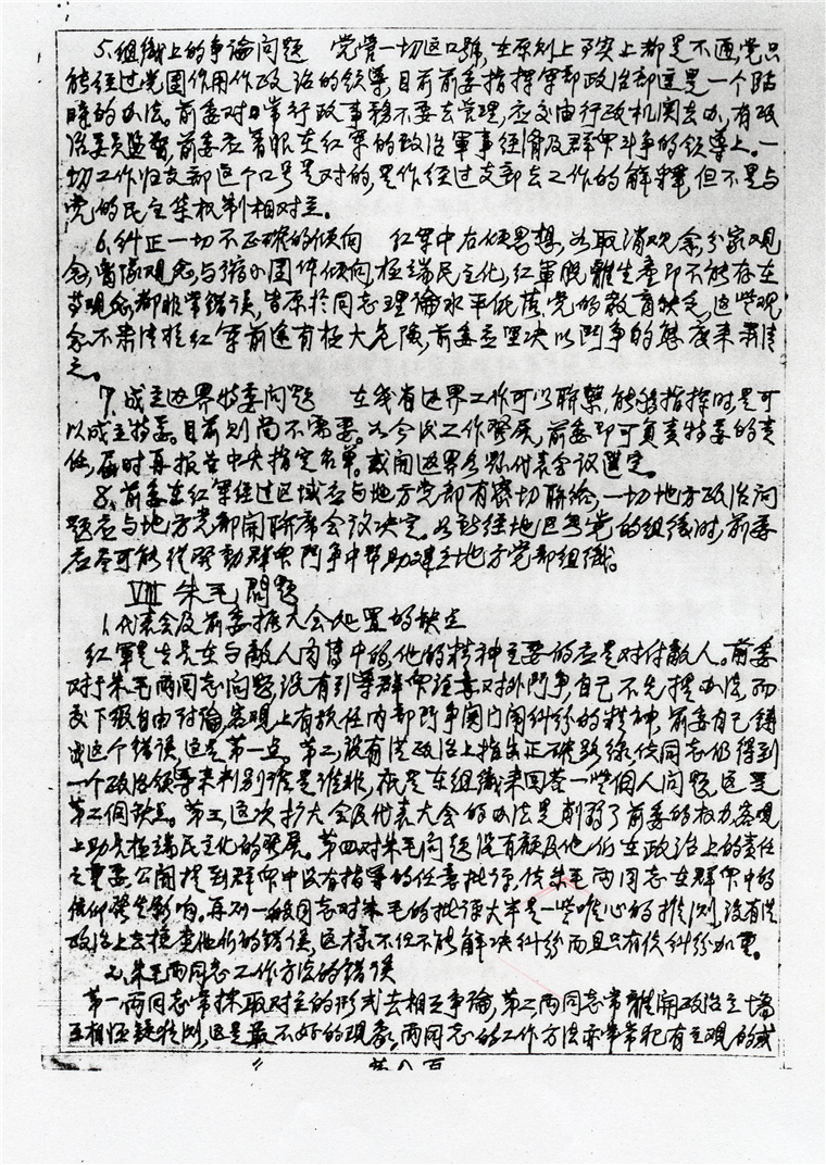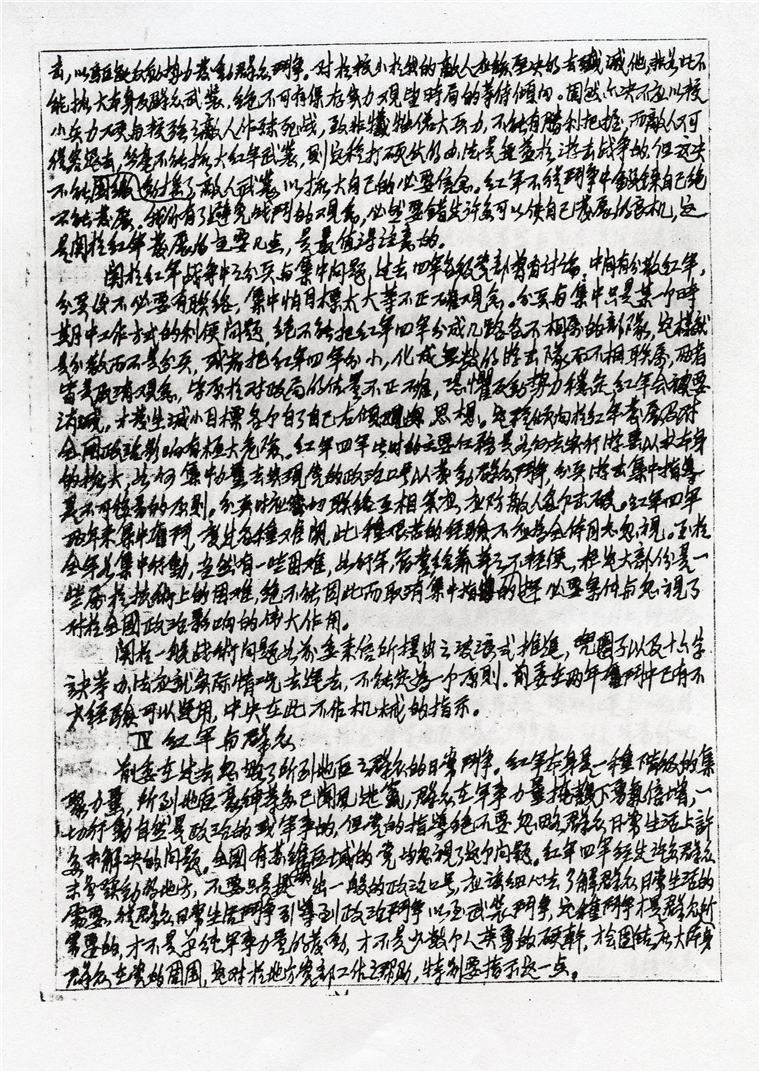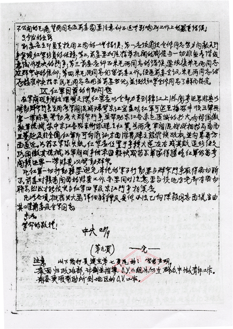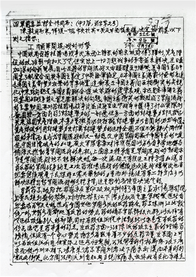 中共中央給紅軍第四軍前委的指示信原始照片。