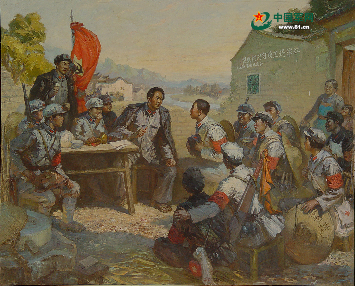 毛澤東在新泉進(jìn)行連隊(duì)調(diào)查(油畫)。資料圖