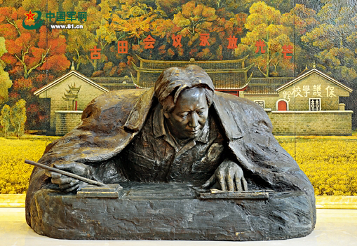 毛澤東起草《古田會(huì)議決議》(雕塑)。資料圖
