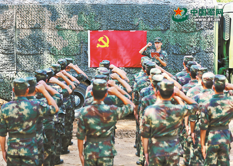 火箭軍某導(dǎo)彈旅官兵在陣地前開展宣誓、火線入黨等活動。宋 波攝