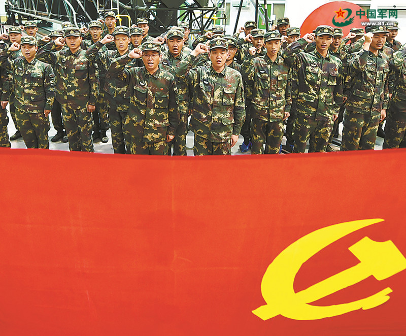 火箭軍某導彈旅官兵在陣地前開展宣誓、火線入黨等活動。宋 波攝