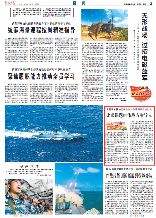 盛夏,火箭軍某基地在華東某訓(xùn)練場(chǎng)擺下政治工作干部綜合性比武擂臺(tái),百余名政治工作干部圍繞共同基礎(chǔ)、崗位基礎(chǔ)、崗位應(yīng)用3個(gè)方面10余個(gè)課目展開(kāi)激烈角逐。每個(gè)課目都基于作戰(zhàn)需要設(shè)置,每個(gè)課題都由作戰(zhàn)方案導(dǎo)入。請(qǐng)關(guān)注今日《解放軍報(bào)》的報(bào)道——