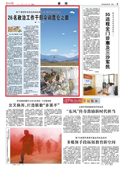 初秋時(shí)節(jié),第77集團(tuán)軍某旅首次組織高原晝夜間傘降實(shí)跳訓(xùn)練,該旅高原駐訓(xùn)地在位的26名政治工作干部全員請纓上陣,完成了包含4種高度、5種傘型、3種姿勢的傘降訓(xùn)練,分管政治工作的黨委常委、政治工作部干事、基層分隊(duì)政治工作主官全部參加。請關(guān)注《解放軍報(bào)》的詳細(xì)報(bào)道——