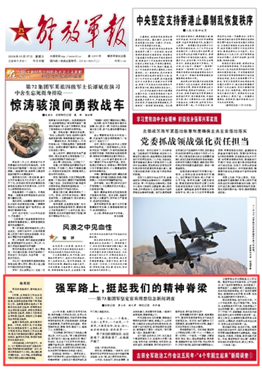5年征途如虹,5年氣象萬(wàn)千。如今,“4個(gè)帶根本性的東西”立得如何?部隊(duì)有哪些新變化新面貌?近日,解放軍報(bào)記者組成多個(gè)小分隊(duì),深入部隊(duì)展開(kāi)調(diào)研采訪。從今天起,《解放軍報(bào)》將陸續(xù)刊發(fā)記者發(fā)自部隊(duì)的新聞?wù){(diào)查。?