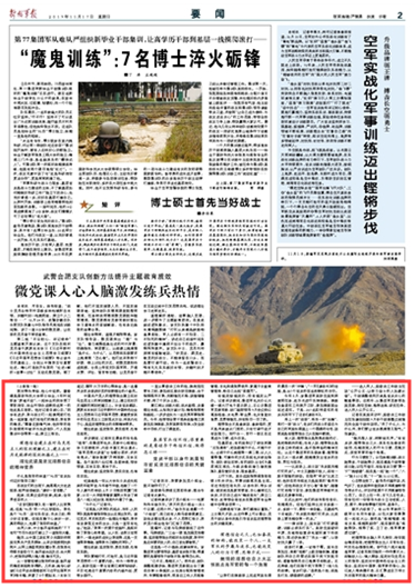 有人說(shuō),理想信念是照亮前路的燈,是把準(zhǔn)航向的舵;也有人說(shuō),理想信念是安身立命的根本,是不懼考驗(yàn)的精神支柱。從這個(gè)集團(tuán)軍的實(shí)踐來(lái)看,理想信念之火一經(jīng)點(diǎn)燃,就能激發(fā)出官兵的自信、責(zé)任與擔(dān)當(dāng)。