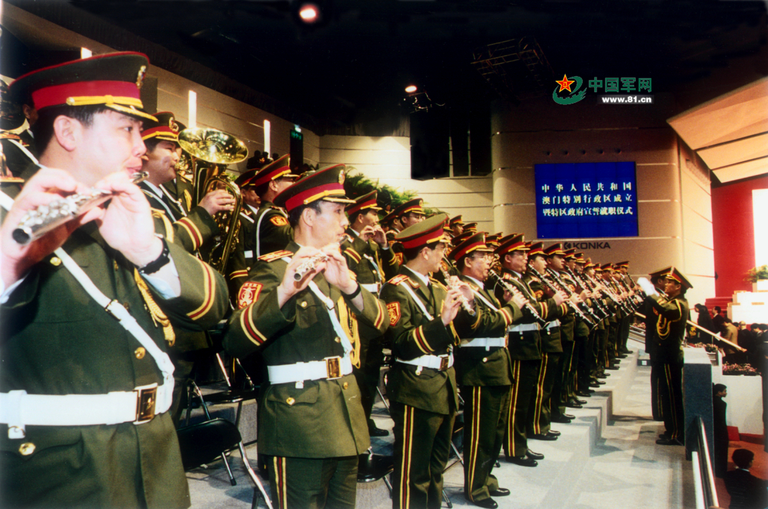 1999年解放軍軍樂團(tuán)在澳門特區(qū)政府成立大會上執(zhí)行演奏任務(wù)。(資料圖片)