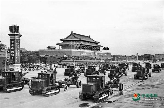 1954年國(guó)慶閱兵,受閱部隊(duì)軍種齊全,受閱武器裝備由開國(guó)大典時(shí)的“萬國(guó)造”變?yōu)樘K式武器,裝備的基本統(tǒng)一標(biāo)志著人民解放軍武器裝備水平有了很大提高。騎兵部隊(duì)最后一次受閱,從此騎兵部隊(duì)退出了國(guó)慶閱兵舞臺(tái),標(biāo)志著我軍由騾馬化向機(jī)械化的轉(zhuǎn)型發(fā)展。