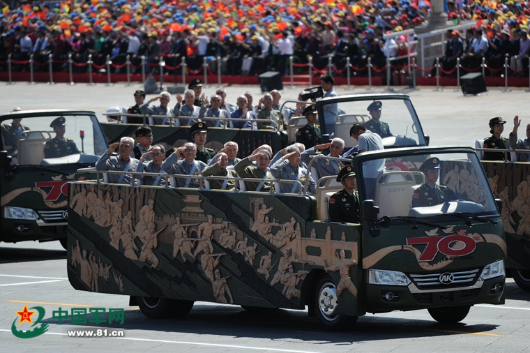 紀(jì)念中國人民抗日戰(zhàn)爭暨世界反法西斯戰(zhàn)爭勝利70周年閱兵,有七大看點(diǎn):一是氣勢恢宏,受閱方隊(duì)接近作戰(zhàn)體系編組方隊(duì)。二是84%武器裝備首次亮相,構(gòu)成涵蓋地面突擊、防空反導(dǎo)、戰(zhàn)略打擊、信息支援、后裝保障、海上攻擊6個作戰(zhàn)模塊,展現(xiàn)了人民解放軍未來打贏信息化條件下局部戰(zhàn)爭的作戰(zhàn)力量。三是女子儀仗隊(duì)員首次參閱。四是千人合唱團(tuán)場面震撼,2400人合唱團(tuán)一起奏唱《保衛(wèi)黃河》《在太行山上》等近30首抗戰(zhàn)時期的經(jīng)典歌曲和富有時代特征的樂曲。五是抗戰(zhàn)老兵方隊(duì)首次參閱,平均年齡90歲。六是來自亞、歐、非、大洋洲和美洲的10多個國家派方隊(duì)或代表隊(duì)參閱,體現(xiàn)了共同維護(hù)世界反法西斯戰(zhàn)爭勝利成果的鮮明態(tài)度。七是閱兵安排了“狼牙山五壯士”英模部隊(duì)、“平型關(guān)大戰(zhàn)突擊連”英模部隊(duì)、百團(tuán)大戰(zhàn)“白刃格斗英雄連”英模部隊(duì)、夜襲陽明堡“戰(zhàn)斗模范連”英模部隊(duì)、“東北抗聯(lián)”英模部隊(duì)等10支抗戰(zhàn)英模部隊(duì),在20名將軍率領(lǐng)下接受了檢閱。