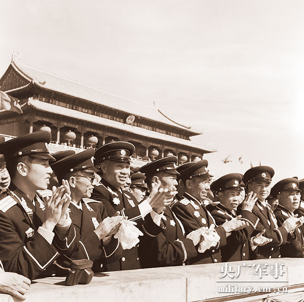 在天安門觀禮臺(tái)上的人民解放軍代表(柳成行攝)