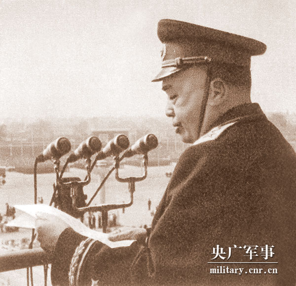 檢閱后,彭德懷元帥登上天安門檢閱臺(tái)向全體陸海空軍官兵講話。他在講話中指出: