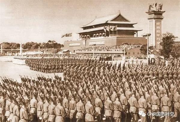 檢閱后,彭德懷元帥登上天安門(mén)檢閱臺(tái)向人民解放軍全體陸海空軍講話。彭德懷在講話中指出: