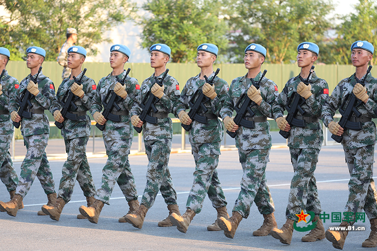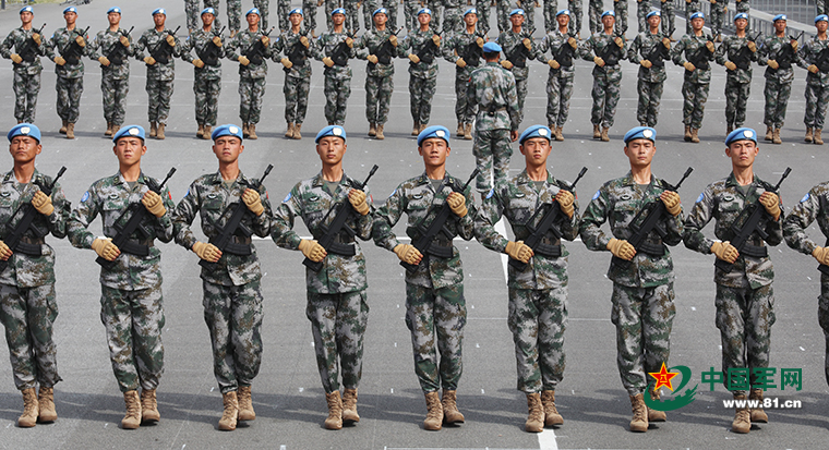 宋杰(中)和戰(zhàn)友們艱苦訓(xùn)練,迎候檢閱。(曾 寶攝)