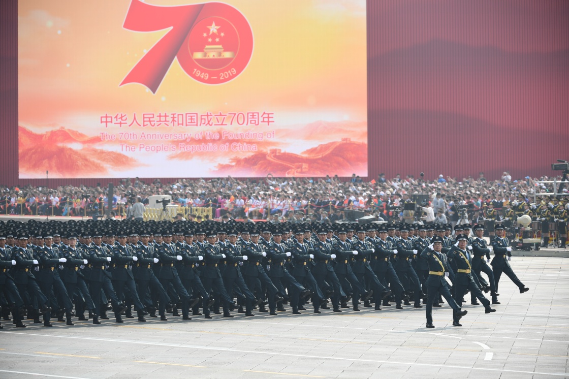 10月1日上午,慶祝中華人民共和國(guó)成立70周年大會(huì)在北京天安門(mén)廣場(chǎng)隆重舉行。這是文職人員方隊(duì)。新華社記者 李尕 攝