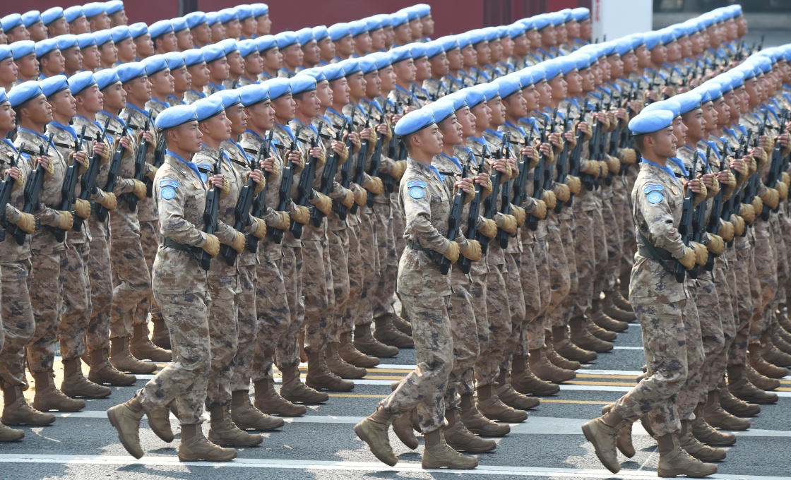 10月1日上午,慶祝中華人民共和國(guó)成立70周年大會(huì)在北京天安門廣場(chǎng)隆重舉行。這是受閱的維和部隊(duì)方隊(duì)。新華社記者 張國(guó)俊 攝