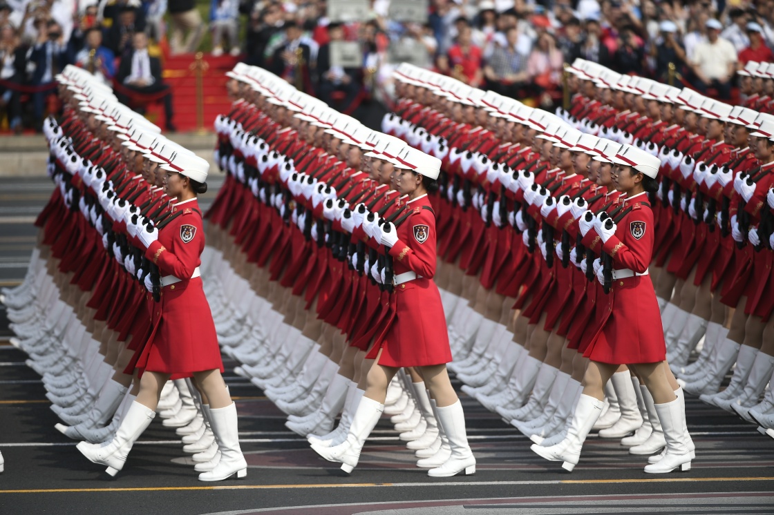 10月1日上午,慶祝中華人民共和國成立70周年大會在北京天安門廣場隆重舉行。這是受閱的民兵方隊。新華社記者 王鵬 攝