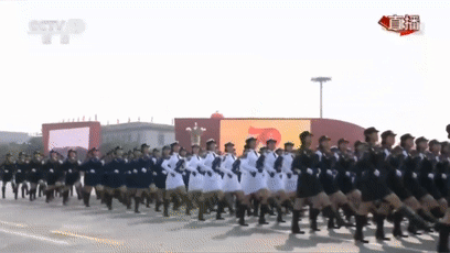 女兵方隊(duì)踏著莊嚴(yán)威武的正步
