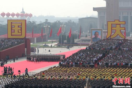 10月1日上午,慶祝中華人民共和國(guó)成立70周年大會(huì)在北京天安門廣場(chǎng)隆重舉行。中新社記者 盛佳鵬 攝