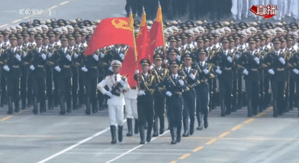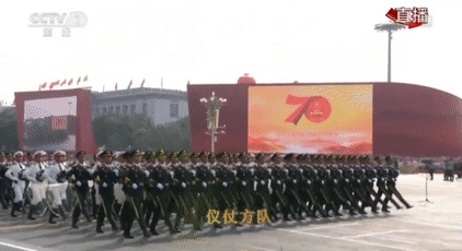 這是儀仗方隊首次同時高擎黨旗國旗軍旗經過天安門接受檢閱,也是儀仗方隊歷次參閱規(guī)模最大的一次。